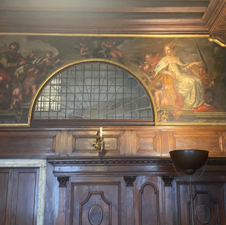 The portraits of the doge and council members were in friezes around the top. One doge had tried to cause a coup and was executed as a result. His portrait is covered in black cloth.