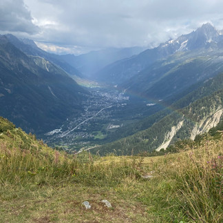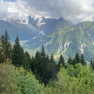 Mont Blanc towered over our heads - still covered in snow. We couldn’t see the top as it was in the clouds.