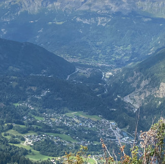 We went for a walk up the small hill next to the tram stop. We looked down into Chamonix , the other side of large mountains from Saint Gervais.