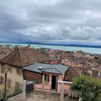 After an hour we came to our park up for the night in a shopping centre carpark in Neufchâtel next to the lake. It’s a great spot handy for town quiet and with good views.